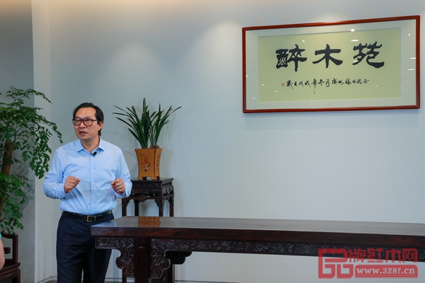 蔣念慈親臨醉木苑,對醉木苑紫檀《西番蓮大條案》進(jìn)行品鑒講解