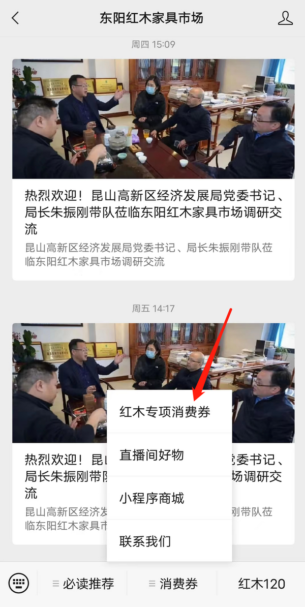4月1日-4月30日(每周六、日),消費(fèi)者可關(guān)注“東陽(yáng)紅木家具市場(chǎng)”官方公眾號(hào)“紅木專項(xiàng)消費(fèi)券”點(diǎn)擊領(lǐng)取電子消費(fèi)券。4月28日至5月6日,消費(fèi)者到達(dá)市場(chǎng)后憑卡包內(nèi)電子消費(fèi)券,到二樓服務(wù)臺(tái)兌換紙質(zhì)防偽消費(fèi)券進(jìn)行核銷使用。