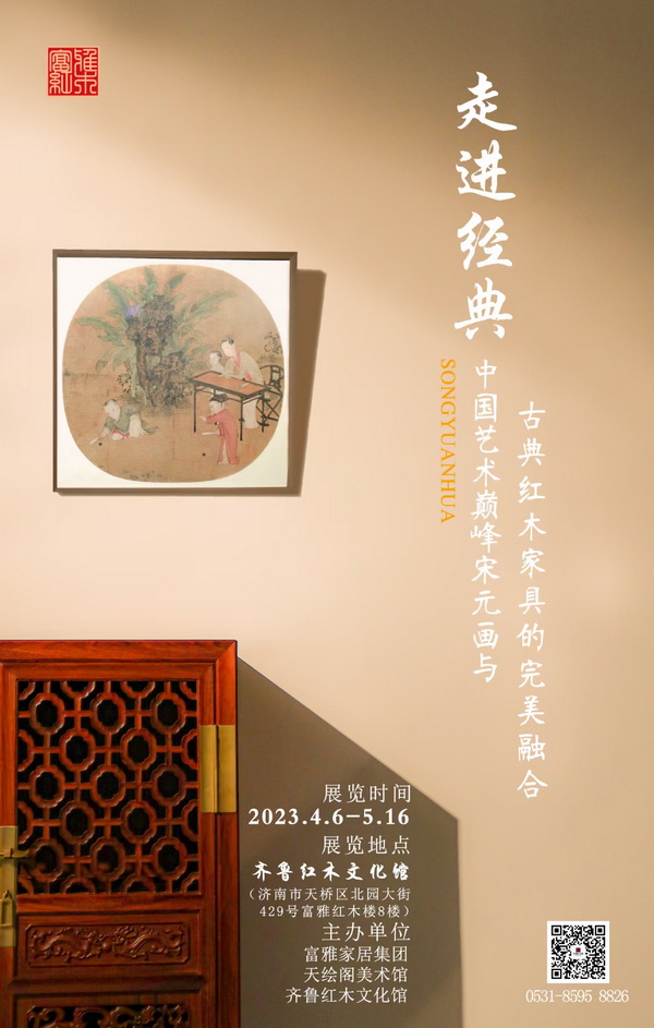 2023年4月6日——5月16日,富雅家居——齊魯紅木文化館舉辦《走進(jìn)經(jīng)典--中國(guó)藝術(shù)巔峰宋元畫(huà)與古典紅木家具的完美融合》文化藝術(shù)展覽,將古典紅木家具與宋元畫(huà)完美融合,虛實(shí)間,穿越千年,帶您領(lǐng)略中國(guó)古典文化藝術(shù)的內(nèi)在美。