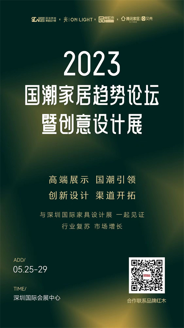 5月25日-5月29日,深圳時(shí)尚家居設(shè)計(jì)周暨深圳國(guó)際家具設(shè)計(jì)展隆重舉行,將秉承“設(shè)計(jì)導(dǎo)向、潮流引領(lǐng)、持續(xù)創(chuàng)新”的戰(zhàn)略定位,以高標(biāo)準(zhǔn)驅(qū)動(dòng)中國(guó)家居產(chǎn)業(yè)高質(zhì)量發(fā)展。此外,2023國(guó)潮家居趨勢(shì)論壇暨創(chuàng)意設(shè)計(jì)展同期舉行,將一起見(jiàn)證行業(yè)復(fù)蘇和市場(chǎng)增長(zhǎng)。