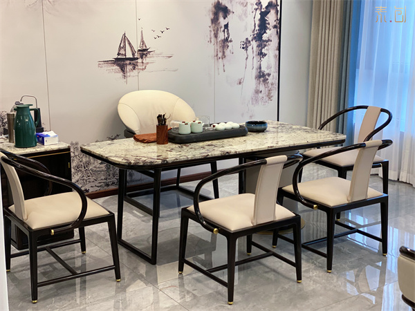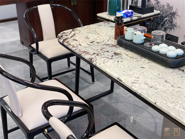 當(dāng)雪山藍大理石蔓延整個茶臺,黑白灰之間描繪著無限雪山風(fēng)光,細看留白處見白雪皚皚,一片寧靜,灰色紋理錯落其中,如山峰高聳入云,幾處變化多端的黑色斑紋,更如梅花綻放,于平靜中又見生機盎然,讓整個空間孕育無盡的自然力量。