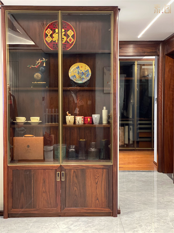 全屋采用珍稀名貴木材“非洲黑檀”作為整裝材質(zhì),黑褐色的非洲黑檀中絲絲游動的黑色木紋若隱若現(xiàn),含蓄而不張揚,以此作為衣柜、酒柜、房門,以及收納柜的材質(zhì),放置在現(xiàn)代空間設(shè)計中獨有一番東方韻味,又有雅致禪意孕育其中,營造禪韻詩意的生活氛圍。