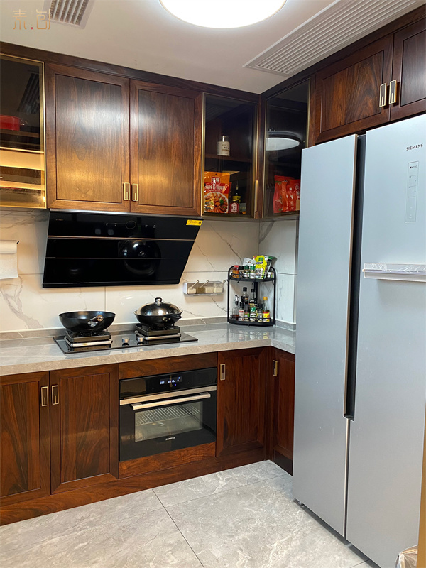 非洲黑檀密度大,棕眼小而稀少,材質(zhì)細膩,硬度大,最適合作為油煙大的廚房和濕度大的衛(wèi)生間的整裝材質(zhì),防潮不易發(fā)霉。同時,天然非洲黑檀散發(fā)的溫潤柔和,寫意古色古香的氛圍感,既美觀也實用。