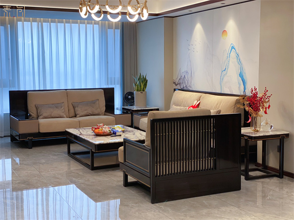 本案例是坐落于東陽的一套168m2大平層,素創(chuàng)設(shè)計師以“山、水、樹”為立意,黑白灰的色彩運用、非洲黑檀的整裝設(shè)計、山水畫作的氛圍營造,從家具到空間,正如水墨畫上的筆觸與布局,繁簡、輕重、明暗、剛?cè)?,大寫意?nèi)藏山水,小著筆處現(xiàn)炊煙裊裊,用水墨風(fēng)骨帶來儒雅韻意的中式輕奢家居美學(xué)。