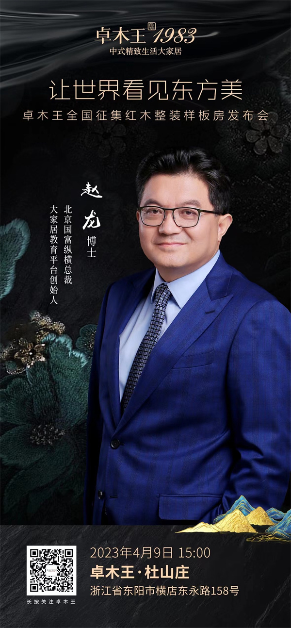 4月9日,“讓世界看見東方美---卓木王全國征集紅木整裝樣板房發(fā)布會”于浙江東陽圓滿舉行,現(xiàn)場多位家居行業(yè)大咖、美學(xué)專家、頂級設(shè)計師共同見證卓木王這一榮耀時刻。