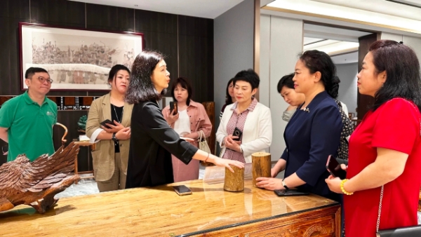 2023年4月23日,民建佳木斯市委副主委、佳木斯市東風(fēng)區(qū)政協(xié)三級(jí)調(diào)研員張艷亞;佳木斯市怡源供熱有限公司總經(jīng)理、民建黑龍江省婦女委員會(huì)主任、佳木斯市女企業(yè)家協(xié)會(huì)會(huì)長(zhǎng)趙明偉一行,在民建中山市委委員、民建中山市委機(jī)關(guān)二級(jí)調(diào)研員陳月榮等領(lǐng)導(dǎo)的陪同下,蒞臨紅古軒參觀考察,共商交流合作,在紅木文化中探尋中華文化雋永的魅力。紅古軒副總裁李春江、營(yíng)銷總監(jiān)楊晶熱情接待來(lái)賓一行。