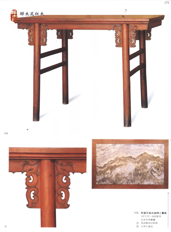 畫案案形結(jié)體,寬于一般條案的無抽屜大案。腿足部位的空間寬闊,既可坐于案前,又可站立作畫,整體造型簡樸大方。