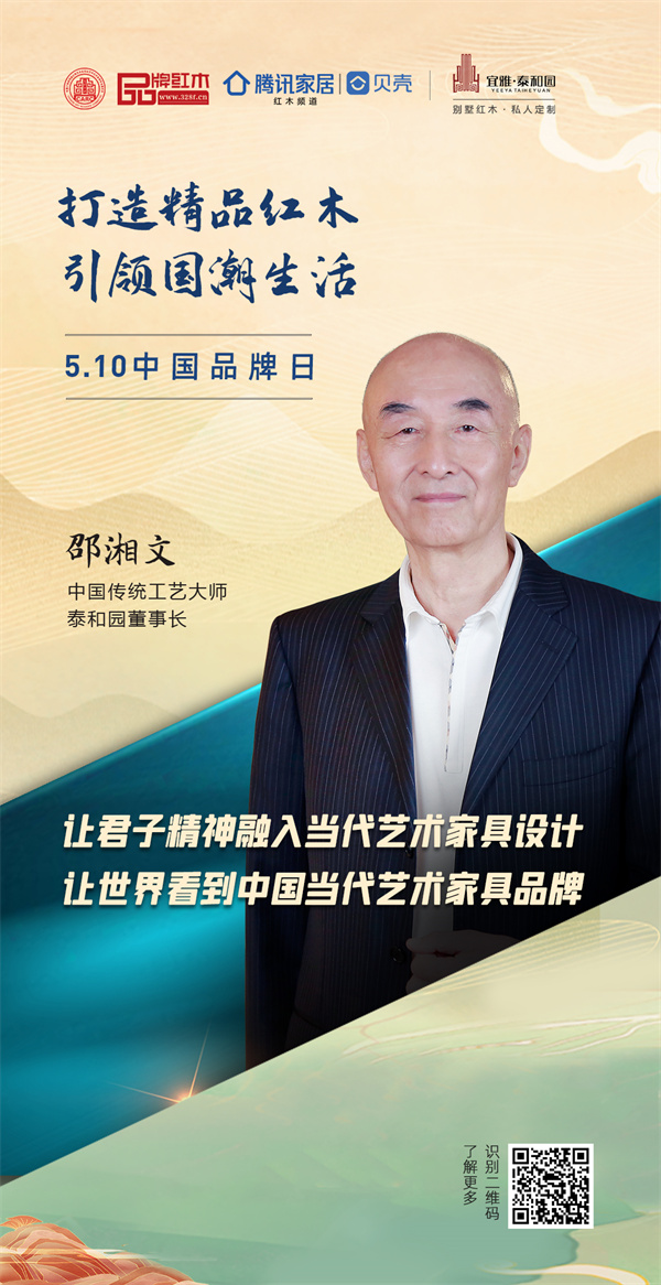 中國傳統(tǒng)工藝大師、泰和園董事長邵湘文發(fā)來寄語:讓君子精神融入當代藝術(shù)家具設(shè)計,讓世界看到中國當代藝術(shù)家具品牌。