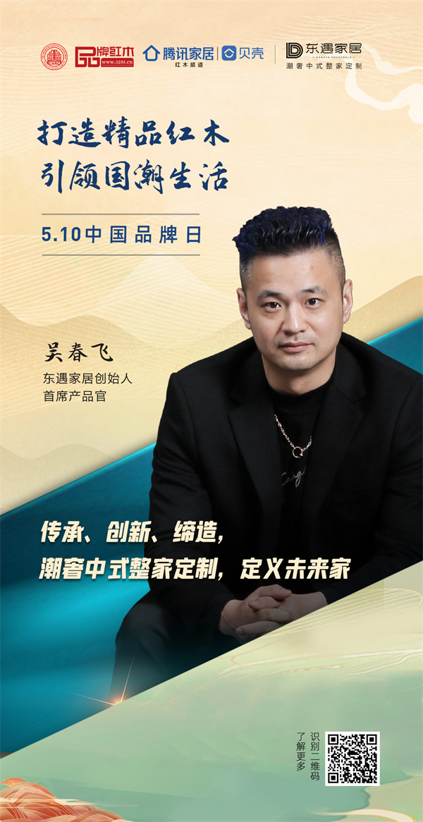 東遇家居創(chuàng)始人、首席產(chǎn)品官吳春飛發(fā)來寄語:傳承、創(chuàng)新、締造,潮奢中式整家定制,定義未來家。