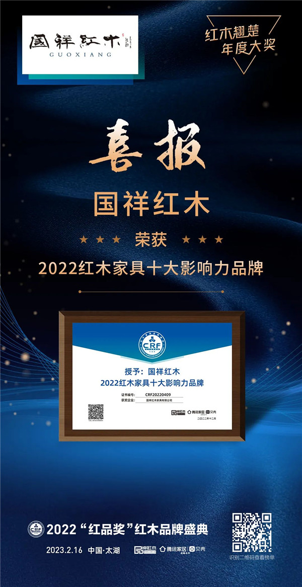 入行30余載的張國強雖已入而立之年,但始終葆有變革精神,矢志研發(fā)新產(chǎn)品、發(fā)展經(jīng)銷商、提升品牌力,以專注求索的誠信品質(zhì)、奮創(chuàng)不止的拼搏精神,堅持匠藝追求、堅持原創(chuàng)設(shè)計,帶領(lǐng)國祥紅木斬獲“紅木家具十大影響力品牌”、“浙江制造品字標認證”、“浙江名牌產(chǎn)品”、“浙江省知名商號”等百項榮譽,發(fā)展成為綜合影響力品牌,成就行業(yè)領(lǐng)創(chuàng)標桿。