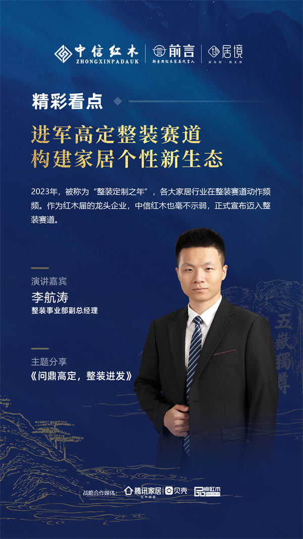 另外,中信紅木一直依托于新零售部門和商學(xué)院,形成高覆蓋、全渠道、強(qiáng)效率的精確門店賦能,為各大經(jīng)銷商直接帶來客源與成交量。這次,中信紅木營銷總監(jiān)劉中炎也將公布《2023中信紅木終端營銷破局》,深度揭秘中信紅木下一階段的營銷布局,為經(jīng)銷商持續(xù)賦能,實(shí)現(xiàn)終端共贏。