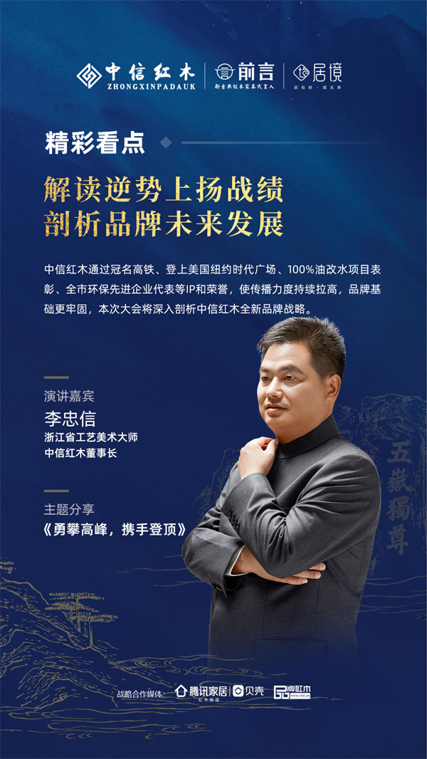 面對如今的市場環(huán)境,中信紅木到底如何保持逆勢增長?本次經(jīng)銷商大會上,中信紅木掌舵人李忠信將現(xiàn)身演講,解讀逆勢上揚(yáng)的戰(zhàn)績及策略方法,深入剖析品牌發(fā)展未來。