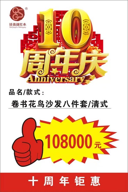 為了回饋廣大客戶十年來(lái)的支持,詩(shī)清閣紅木優(yōu)選多款爆品紅木家具,特惠家具款式之多,價(jià)格優(yōu)惠力度之大,都是前所未有的。這一次,詩(shī)清閣紅木再度將誠(chéng)意值拉滿。