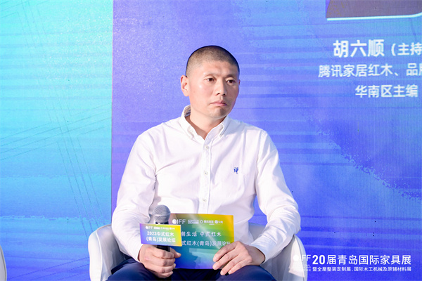 在2023中式紅木(青島)論壇主題對話環(huán)節(jié),全聯藝術紅木家具專業(yè)委員會專家顧問、中國紅木家具技術專家曹新民,東陽古森紅木董事長吳飛陽,IID-ASC中國建筑學會室內設計分會常務理事山東會員中心負責人、山東儒風設計研究院創(chuàng)意總監(jiān)盧克巖,山東福王紅木總經理王文君,山東陳氏紅木總經理陳炳承嘉賓圍繞“國潮生活 中式紅木”主題,解讀了紅木家具的新趨勢和新機遇。