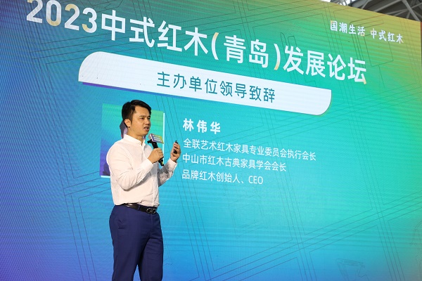 全聯藝術紅木家具專業(yè)委員會執(zhí)行會長、中山市紅木古典家具學會會長、品牌紅木CEO 林偉華致辭