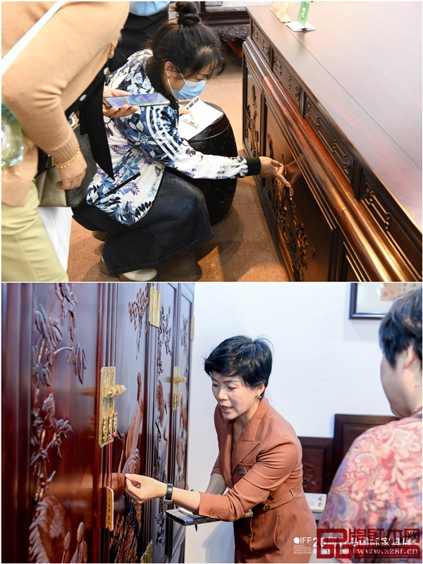 懷古紅木家具精品吸引了眾多觀展商駐足品鑒