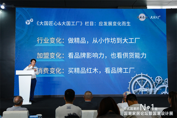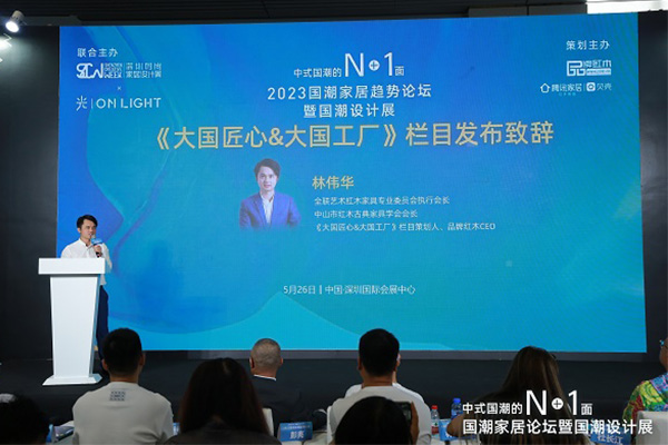 在國潮趨勢論壇上,品牌紅木聯(lián)合騰訊家居|貝殼,與全聯(lián)民間文物藝術(shù)品商會藝術(shù)紅木家具專業(yè)委員會共同策劃打造《大國工廠》欄目重磅推出?!洞髧S》欄目是《大國匠心》、《大國精品》系列的深度升級欄目,欄目成立的初衷及愿景是什么?《大國匠心&大國工廠》欄目策劃人、品牌紅木CEO 林偉華在致辭中給出了答案。