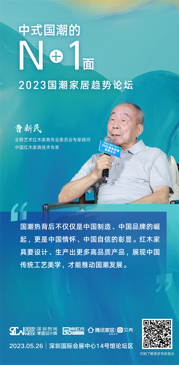 當(dāng)山河國色被融入彩妝,當(dāng)越來越多中式美學(xué)在國際時(shí)裝周大放異彩,中華傳統(tǒng)文化正在掀起一股勢(shì)不可擋的國潮之風(fēng)。在中式國潮的N+1面——2023國潮家居趨勢(shì)論壇在第一輪對(duì)話環(huán)節(jié),全聯(lián)藝術(shù)紅木家具專業(yè)委員會(huì)專家顧問、中國紅木家具技術(shù)專家曹新民與幾位嘉賓,就如何理解“國潮”等話題展開討論。