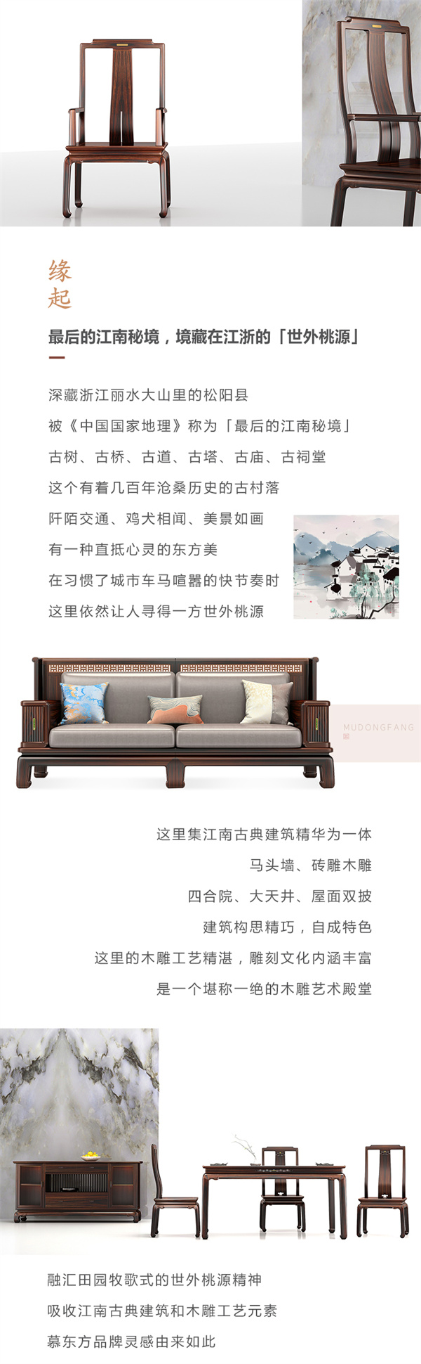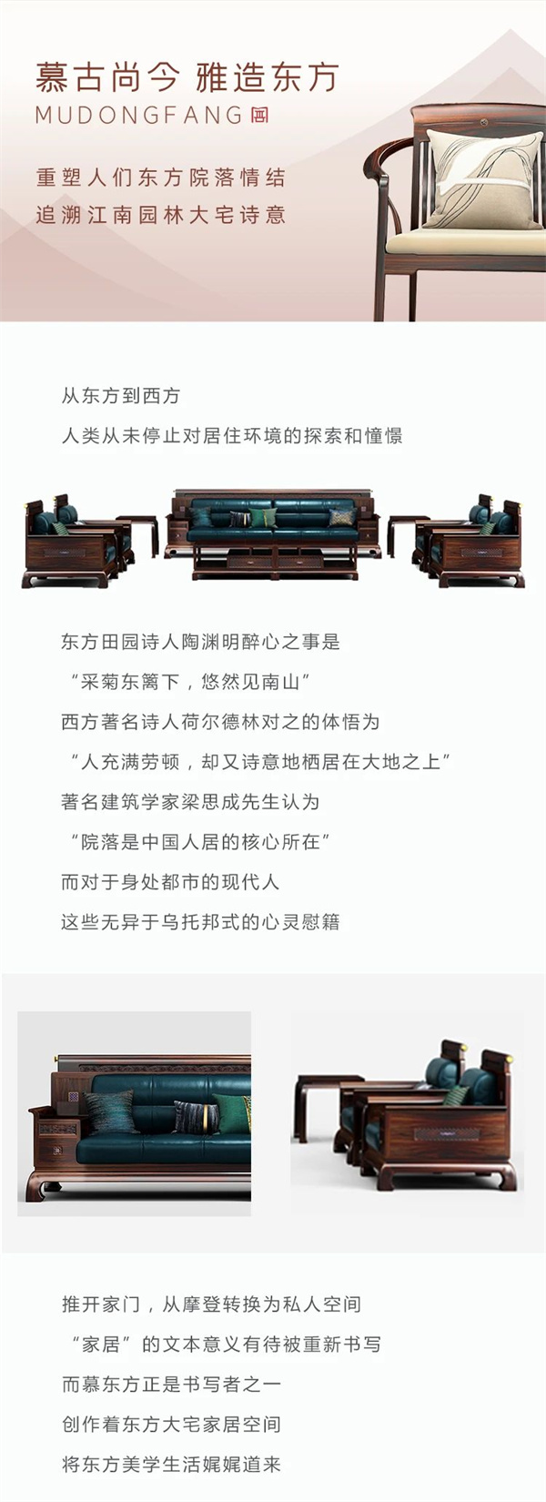 慕東方,以精品闊葉黃檀家具匹配東方大宅的高貴感,以「最后的江南秘境」的文化根脈闡述東方大宅的詩情畫意。...