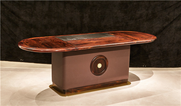 東遇家居·岳納茶臺圓滿融通,以圓弧為設(shè)計(jì)元素。長度稍長于雙臂展開,寬度適中,既不局促,也不疏遠(yuǎn),讓每位客人都有足夠的舒展空間。闊葉黃檀木×皮質(zhì)×黃銅的融合,包容多元,別致的設(shè)計(jì)、精致的做工更顯匠心。讓喝茶更有儀式感,讓茶更香、情更濃。