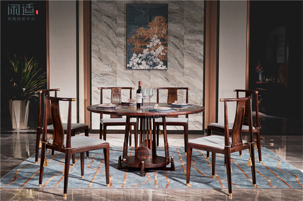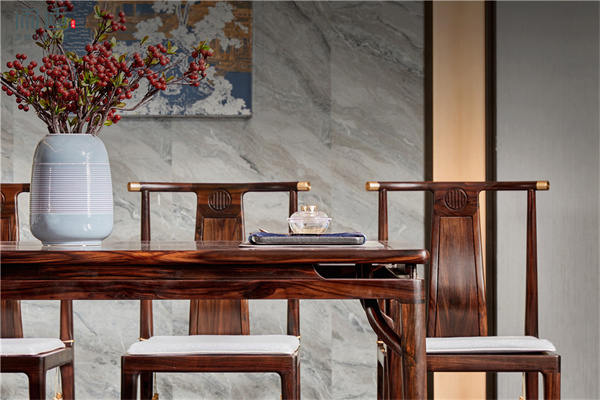 紅木餐桌具有濃烈的中式風格特色,運用中國家具制造的榫卯、鑲嵌、雕刻等傳統(tǒng)工藝,精雕細琢,造型考究,其古樸深沉的氣息非常適合當下審美的要求,提升一個家的文雅氣質。