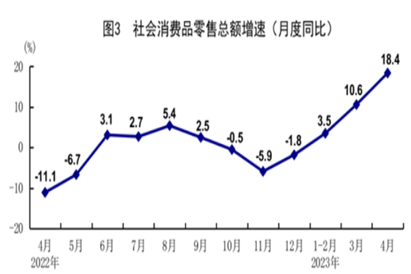 近日,國家統(tǒng)計局公布2023年4月份國民經(jīng)濟(jì)運(yùn)行情況。數(shù)據(jù)顯示,社會消費(fèi)品零售(以下簡稱“社零”)總額34910億元,同比增長18.4%。按消費(fèi)類型劃分,在16類商品零售總額中,共計3種同比下降,分別為建筑及裝潢材料類、文化辦公用品類、飲料類。其中,建筑及裝潢材料類零售總額為152億元,同比降幅最大,達(dá)-11.2%,位列倒數(shù)第一,較3月排位下跌一名。而家具類零售總額為109億元,同比增長3.4%。