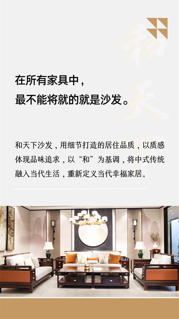 [摘要]和天下沙發(fā),用細(xì)節(jié)打造的居住品質(zhì),以質(zhì)感體現(xiàn)品味追求,以“和”為基調(diào),將中式傳統(tǒng)融入當(dāng)代生活,重新定義當(dāng)代幸福家居。