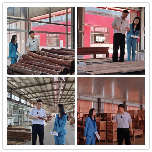 中國傳統(tǒng)工藝大師、巧奪天工紅木董事長(zhǎng)張愛冬與主持人一起探秘巧奪天工紅木工廠