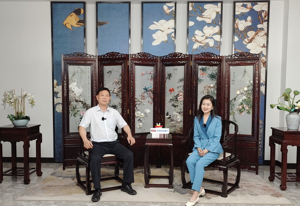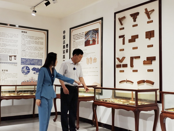 中國傳統(tǒng)工藝大師、巧奪天工紅木董事長(zhǎng)張愛冬與主持人一起走進(jìn)巧奪天工紅木文化博物館