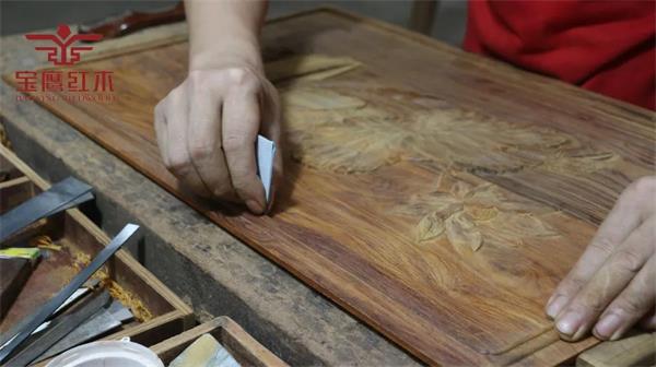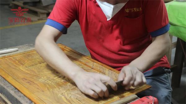 下面家寶紅木帶你走進(jìn)工廠,近距離觀看手工刮磨花的制作過程。