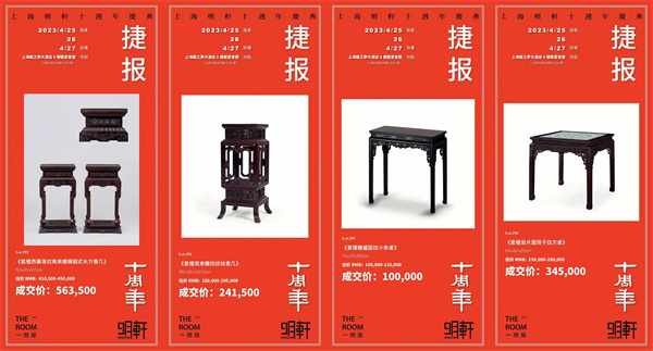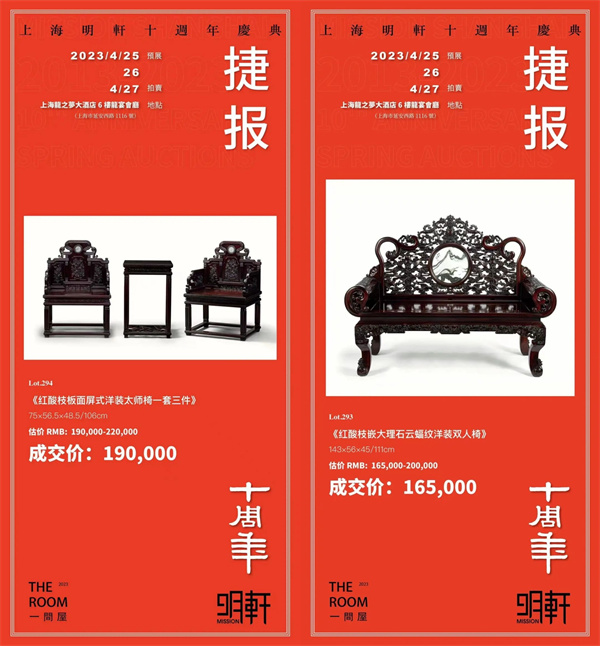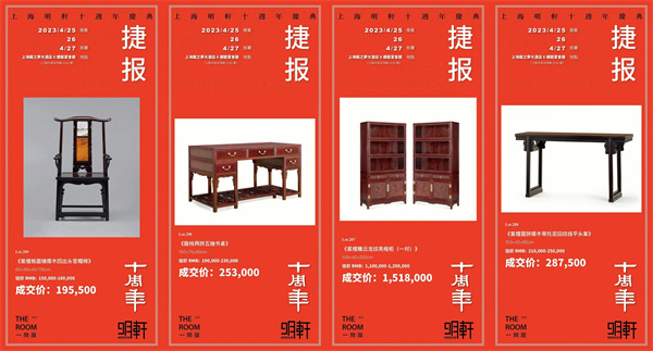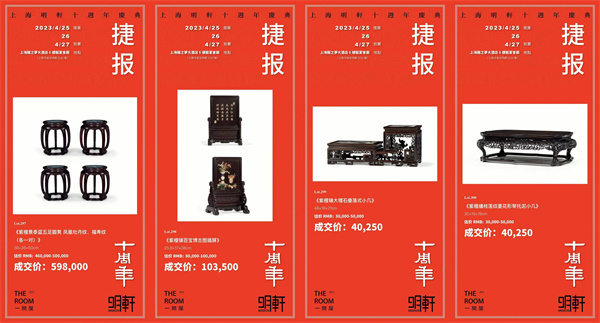 本次拍賣會,中式書房陳設(shè)的區(qū)氏家具超過80%成交,區(qū)氏家具在收藏家界受到了強烈的歡迎。