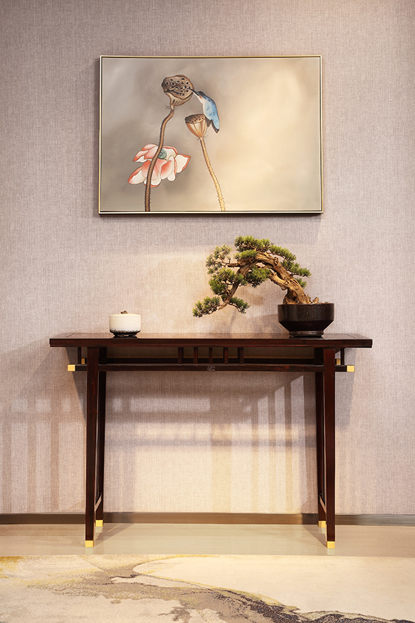 其實,在房間的整體設(shè)計中,玄關(guān)是給人第一印象的地方,是反映主人文化氣質(zhì)的“臉面”。玄關(guān)相對于整個空間來說應(yīng)是“猶抱琵琶半遮面”,讓來人有充分的想像和回味的余地。玄關(guān)處適合擺放的家具有條案、低柜、邊桌、明式椅、博古架、屏風(fēng)……不同的家具擺放,可以承擔(dān)不同的功能,或集納、或展示。