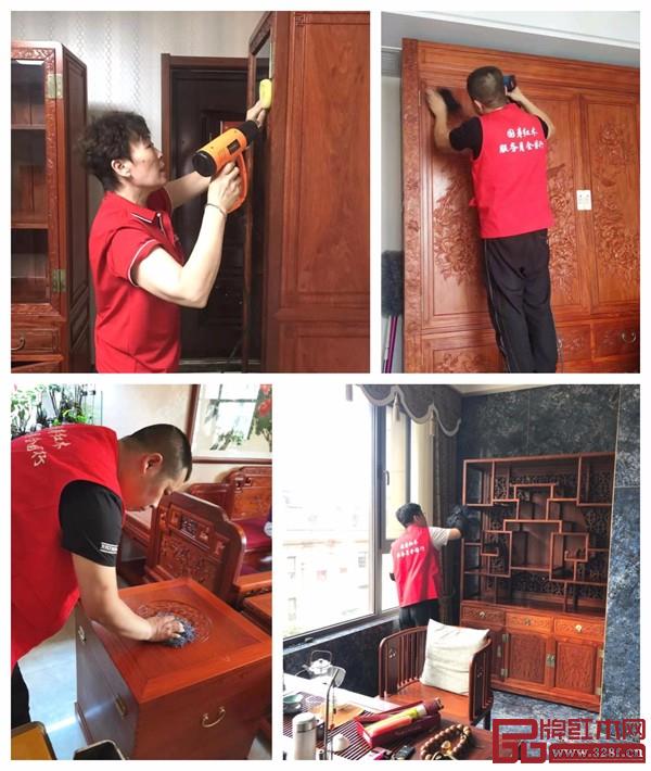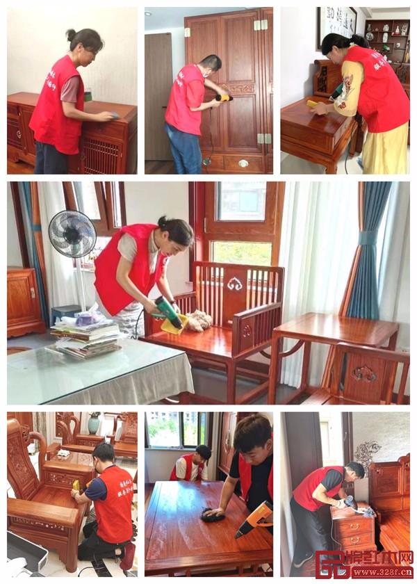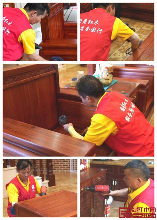 我們定下了每年的6月份,作為我們品牌增值服務月;在今年,我們聯(lián)合了全國近百個城市的線下專賣店,開啟了一場紅木煥新,保養(yǎng)服務活動。
