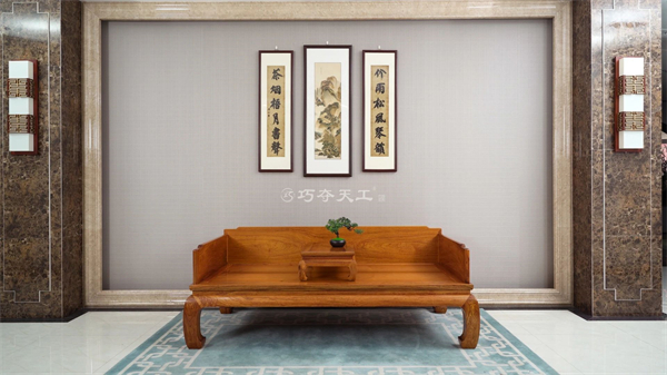 我就想這個(gè)問題,要做紅木家具,相比起來(lái),它和一般的家具不一樣,已經(jīng)上升了一個(gè)很高的層次,文化底蘊(yùn)是很深厚的。最后我想到了巧奪天工這四個(gè)字。