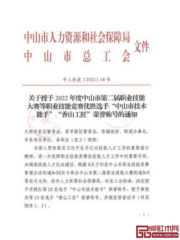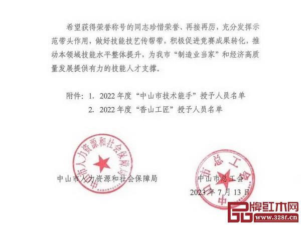 近日,中山市人力資源和社會保障局聯(lián)合中山市總工會發(fā)布文件,授予2022年度中山市第二屆職業(yè)技能大賽等職業(yè)技能競賽優(yōu)勝選手“中山市技術(shù)能手”“香山工匠”。