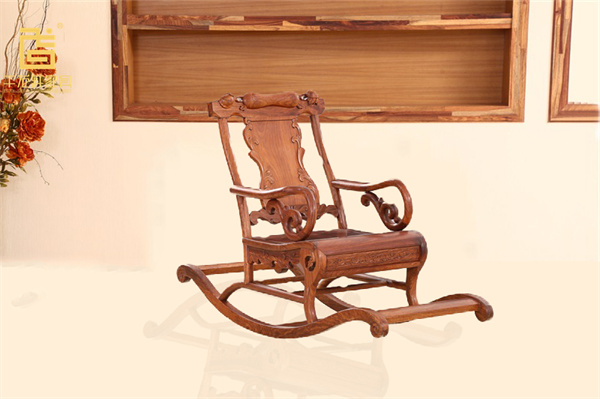 清代木工工藝與技藝不斷提高,家具品類越來越多,分類越來越細(xì),便出現(xiàn)了搖椅,流傳至今。搖椅區(qū)別于普通椅類的最顯著特點(diǎn)在于可坐可臥,累了躺上去搖一搖,能使全身放松,呼吸放緩,舒絡(luò)筋骨,片刻進(jìn)入半睡的狀態(tài),使身心放松。