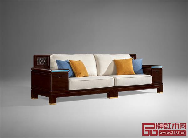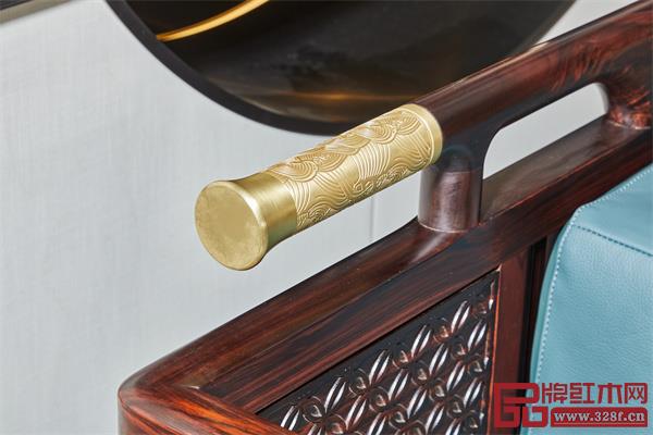 在其他原材和設(shè)計(jì)上,更能凸顯出此套沙發(fā)的精細(xì)做工,選用珍稀國(guó)標(biāo)紅木紅酸枝,精選大料、只取芯材;欽點(diǎn)大師級(jí)手工匠人實(shí)行純手工刮磨,精磨2-4天;銅飾經(jīng)由特色噴油工藝處理,光滑無(wú)印,演繹高級(jí)典雅的生活氣質(zhì)。