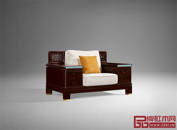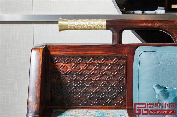 此外,沙發(fā)整體以榫卯工藝拼接,更加結(jié)實(shí)耐用,再搭配闊葉黃檀細(xì)膩的紋理和溫潤(rùn)的木質(zhì),為沙發(fā)注入了低調(diào)沉穩(wěn)的美感。在設(shè)計(jì)上,《冠宇沙發(fā)》細(xì)節(jié)滿(mǎn)滿(mǎn),以東方傳統(tǒng)銅錢(qián)紋為主要雕飾、點(diǎn)綴上精細(xì)的黃銅金屬、搭配上意大利石材,讓紅木煥發(fā)出新的生機(jī)與活力。