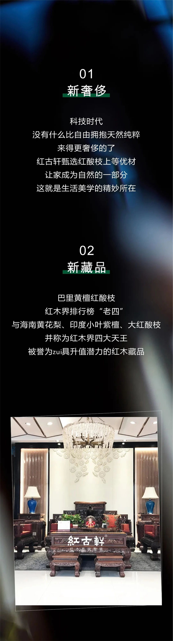 [摘要]新奢侈、新藏品、新貴族、新趨勢(shì)……用紅酸枝的八大關(guān)鍵詞定義新生活美學(xué)。