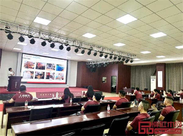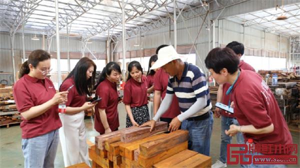 為豐富培訓課程和內容,訓練營還組織了學員到六聯開料廠區(qū)實地參觀考察,通過近距離觀察認知學習,直觀了解紅木家具的原料材質與制作工藝,將理論與實踐相結合,切實提高培訓效果。