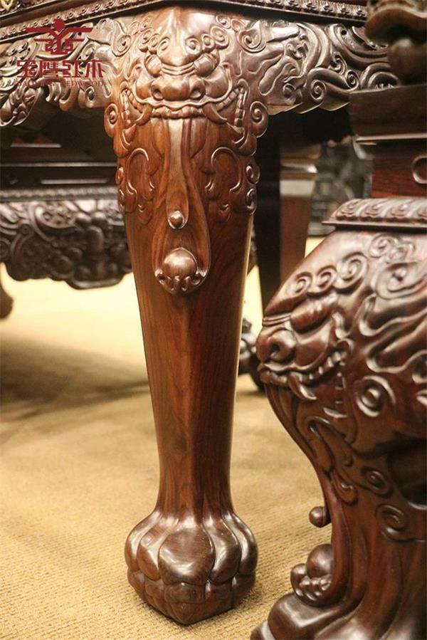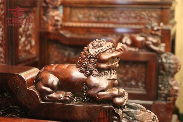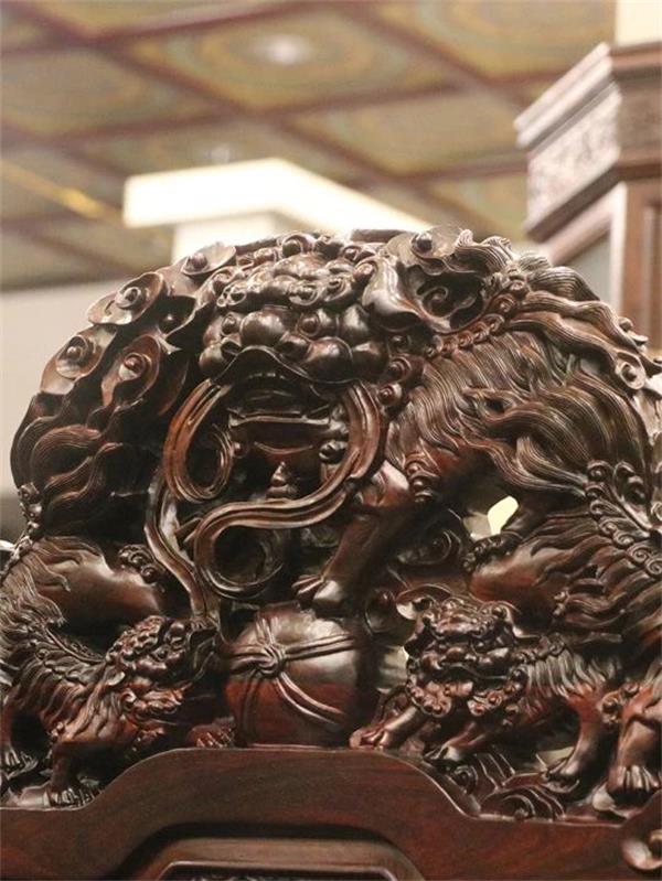 盛世中華沙發(fā)以瑞獅為主題,對木雕刻師來說,雕刻瑞獅并非易事。瑞獅也稱醒獅,醒獅文化作為國家級非物質(zhì)文化遺產(chǎn),在廣東流傳已有一千多年歷史,自古以來是廣東人心目中之尊貴圣獸,以吸納神氣的祥瑞靈物,要雕刻出瑞獅的威嚴以及其豐富的形象,對木雕師的領(lǐng)悟能力和雕刻手法是極其考驗的。