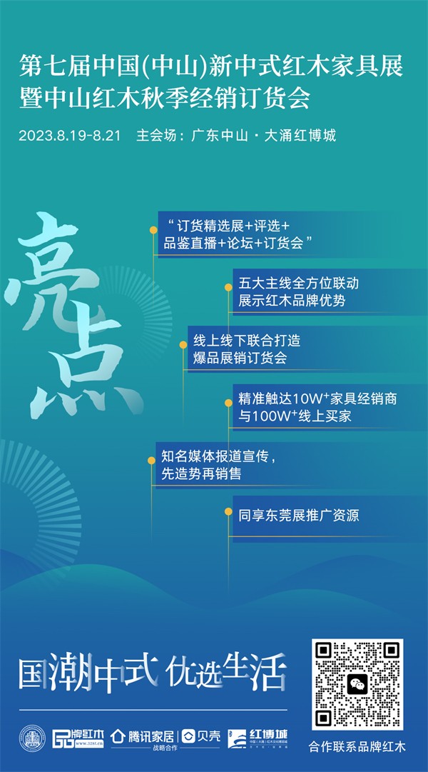 2023年8月,第七屆中國(中山)新中式紅木家具展暨中山紅木秋季經(jīng)銷訂貨會(以下簡稱新中式紅木展)將攜手紅木行業(yè)大咖,一起釋放家居市場活力,領(lǐng)航紅木家具行業(yè)。