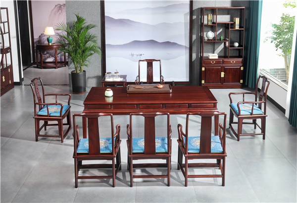 以紅酸枝為基打造的精致茶室和茶幾,提倡典雅、大方。家具的每一處細節(jié),都是精雕細琢的成果。不僅考慮美觀,更考慮其實用性,兼顧國人家居面積的使用情況,做到合理兼顧每一個細節(jié)。
