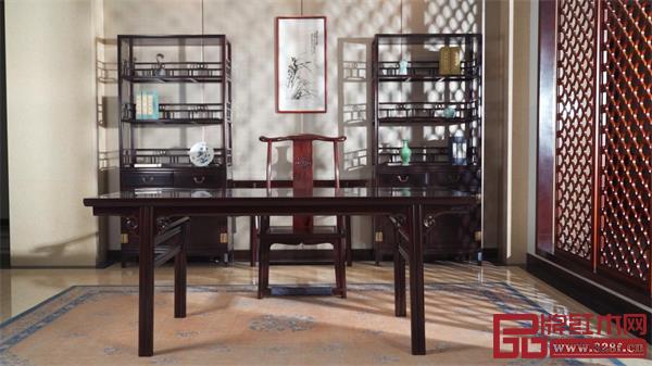 精品名稱:經(jīng)典書房家具(亮格柜+瓜棱腿云紋畫案)