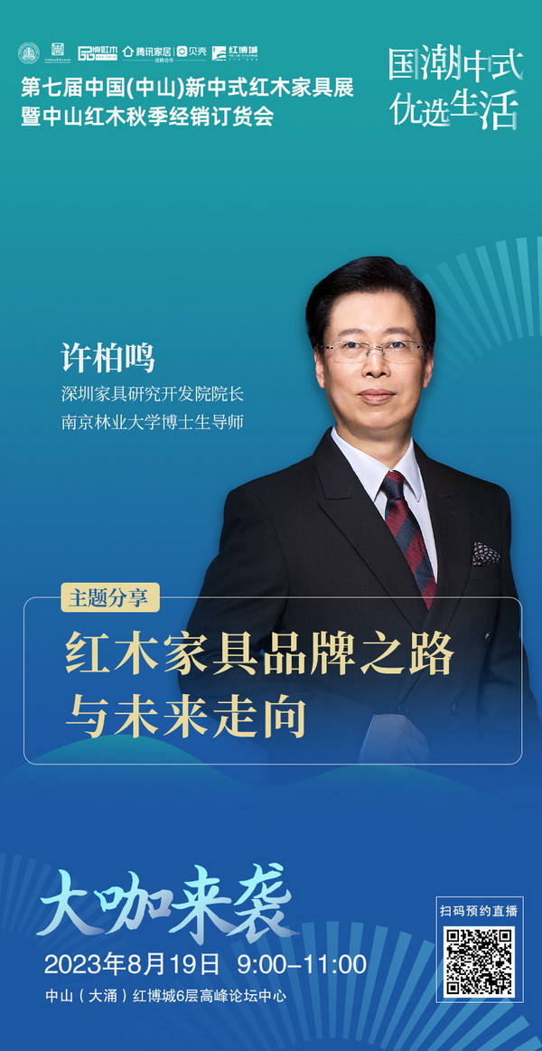 深圳家具研究開發(fā)院院長許柏鳴將帶來“紅木家具品牌之路與未來走向”主題分享