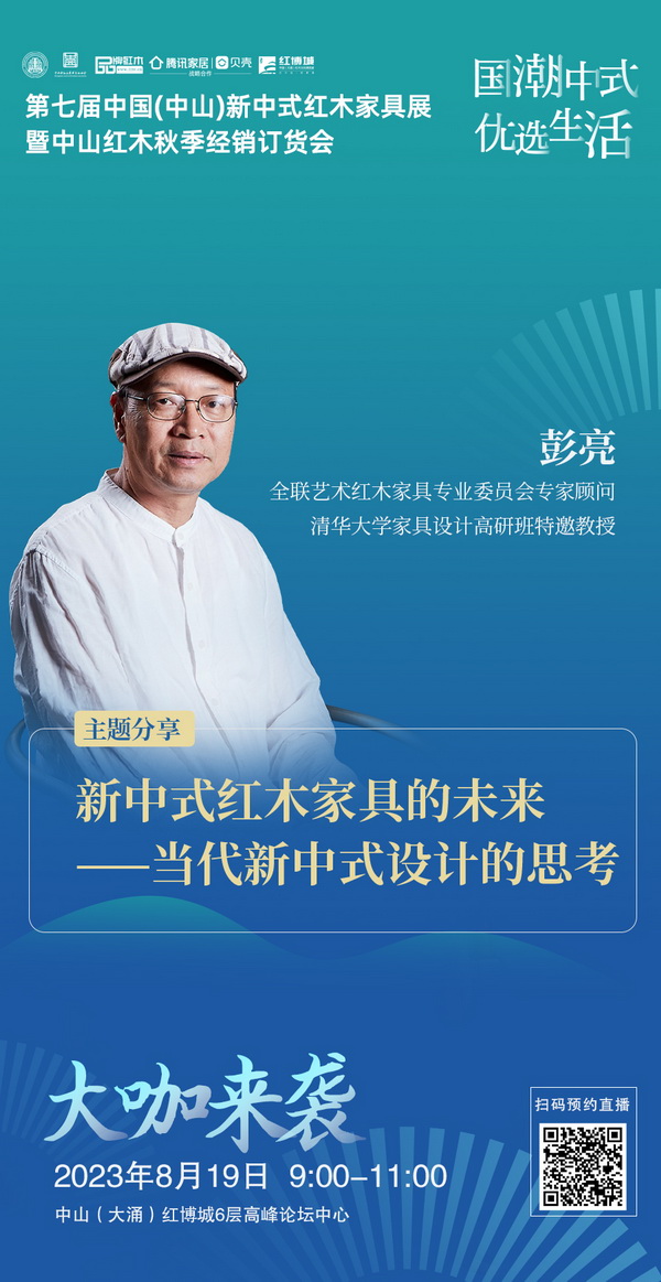 清華大學(xué)家具設(shè)計高研班特邀教授彭亮將帶來“新中式紅木家具的未來一當(dāng)代新中式設(shè)計的思考”主題分享