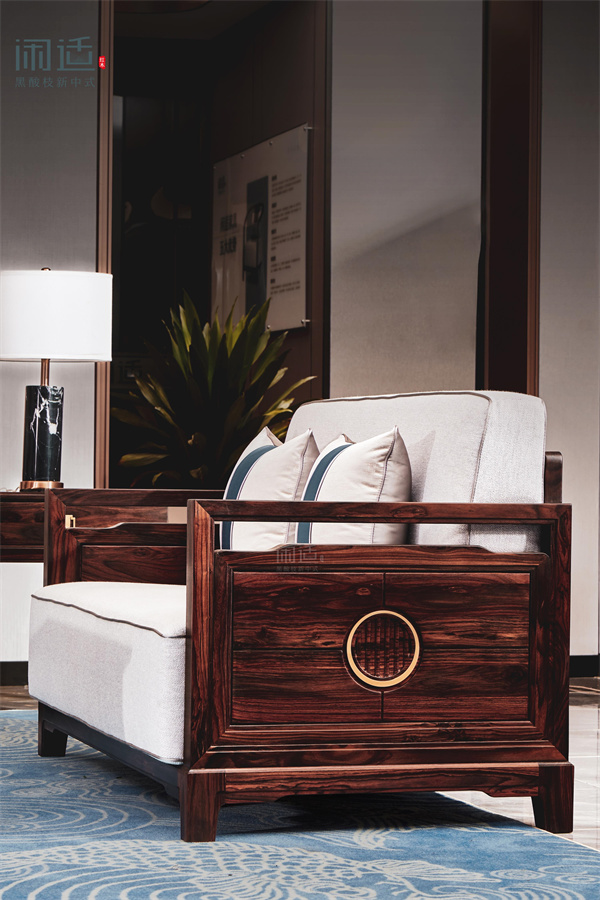 [摘要]閑適紅木新中式沙發(fā)有著時尚簡約的外形設(shè)計,且極具東方氣質(zhì),黑酸枝色澤光亮飽滿,色彩細膩豐富,天然花紋效果,彰顯出古色古香的家居格調(diào)