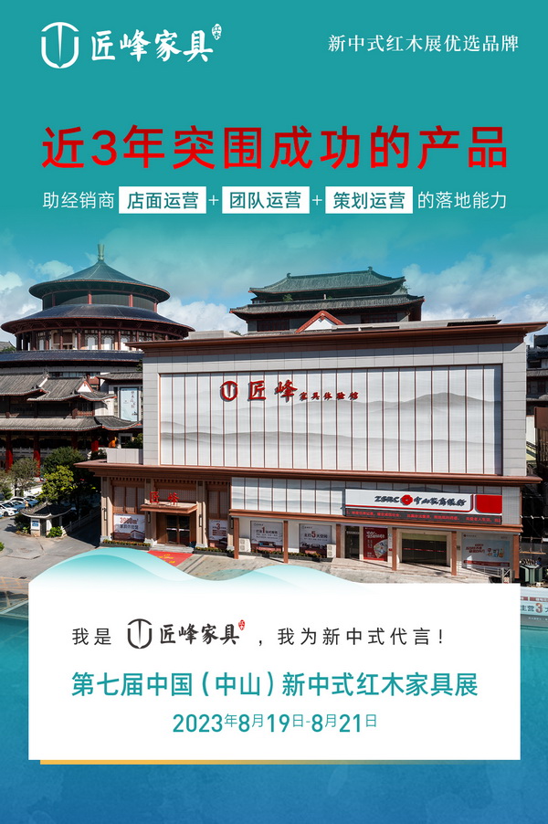 中山市匠峰家具有限公司(以下簡稱匠峰家具)攜精品家具參加2023新中式紅木展,積極助力產(chǎn)業(yè)盛會順利召開,彰顯品牌企業(yè)的行業(yè)擔(dān)當(dāng)。