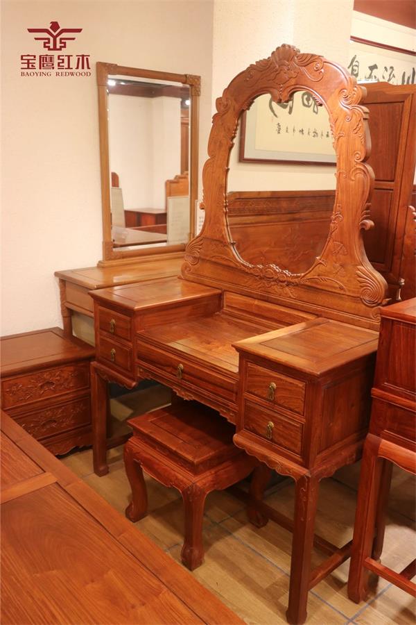 紅木取材天然,健康環(huán)保,因此受到越來越多人的青睞。臥室里置辦一套紅木大床、梳妝臺,其紅木的淡淡清香可以安神,穩(wěn)定神經(jīng)中樞,放松情緒,促進(jìn)睡眠。