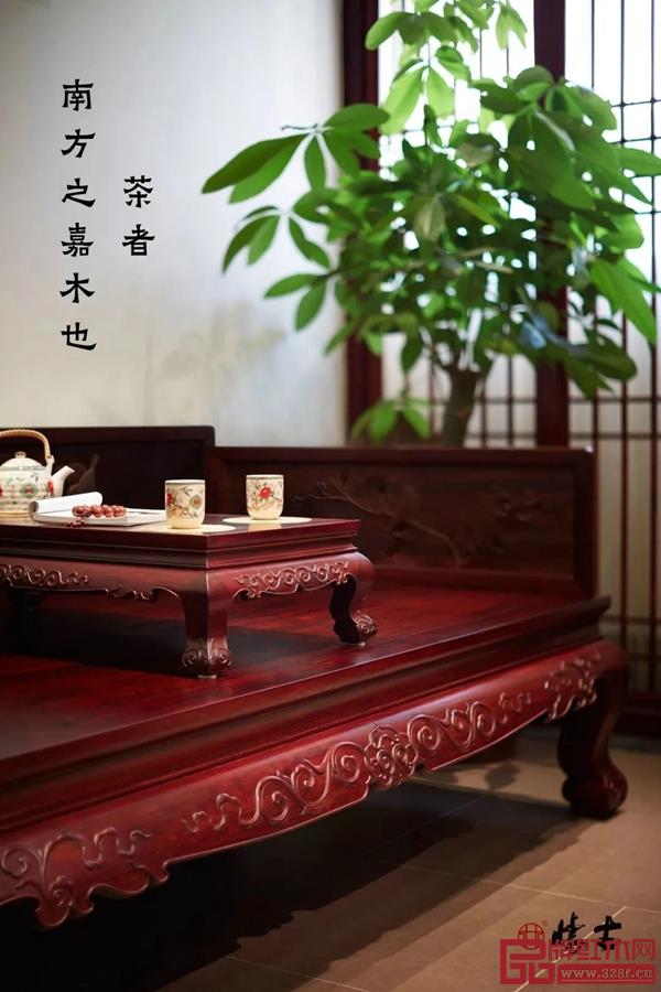 品茶,作為融入中華民族的飲食文化之一,已經(jīng)成為中國(guó)人生活不可缺少的一部分。當(dāng)茶文化與紅木家具相遇,必然會(huì)迸發(fā)出別樣的火花。讓我們坐在紅木茶桌旁,握一杯香茶,細(xì)細(xì)品味茶的滋和紅木家具的溫潤(rùn)。